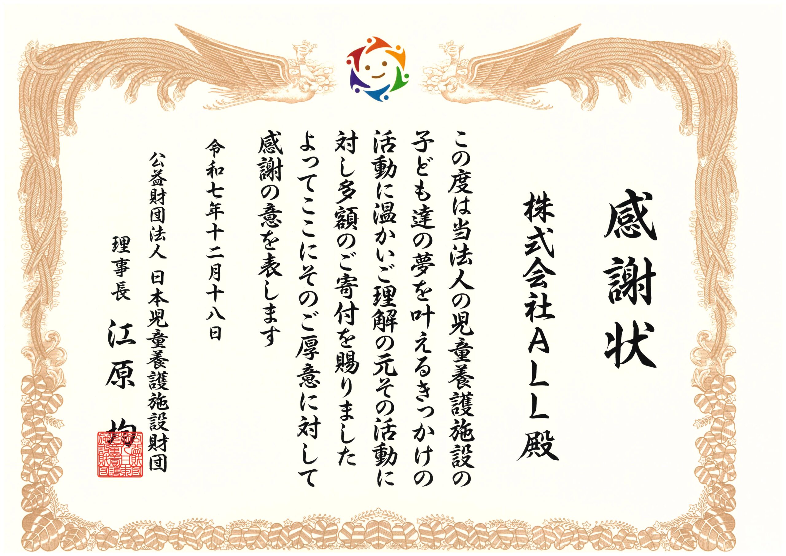 2025/12/18:公益財団法人 日本児童養護施設財団に寄付をしました。